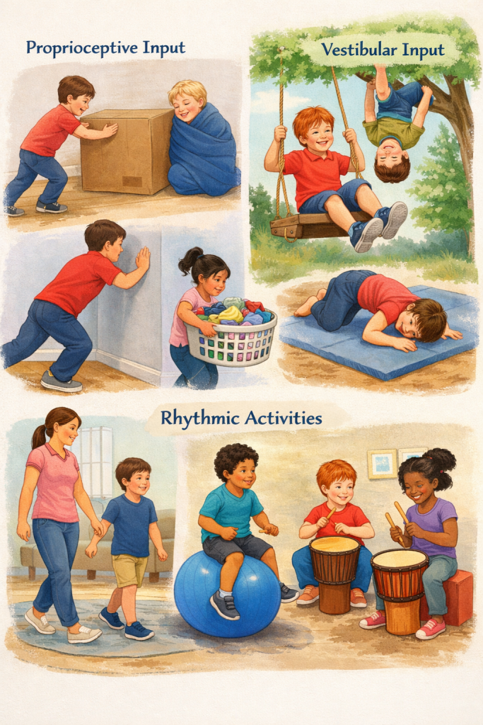 That’s where proprioceptive input, vestibular input, and rhythmic integration come in.